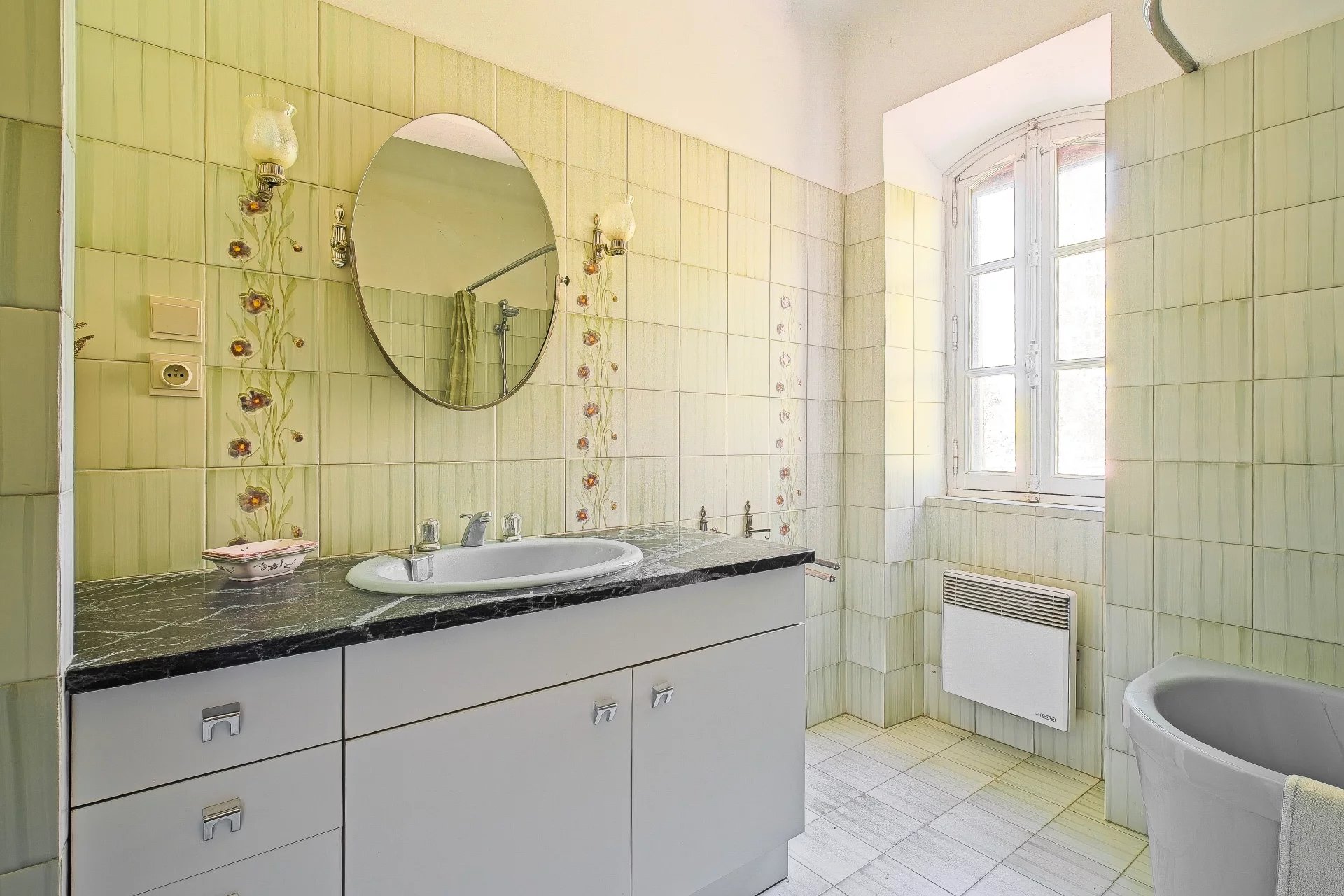 - Au premier niveau : deux chambres, dont une avec cheminée, une salle de bains avec toilettes, et une suite parentale ouverte sur une terrasse avec salle de bains et sanitaires privés.
