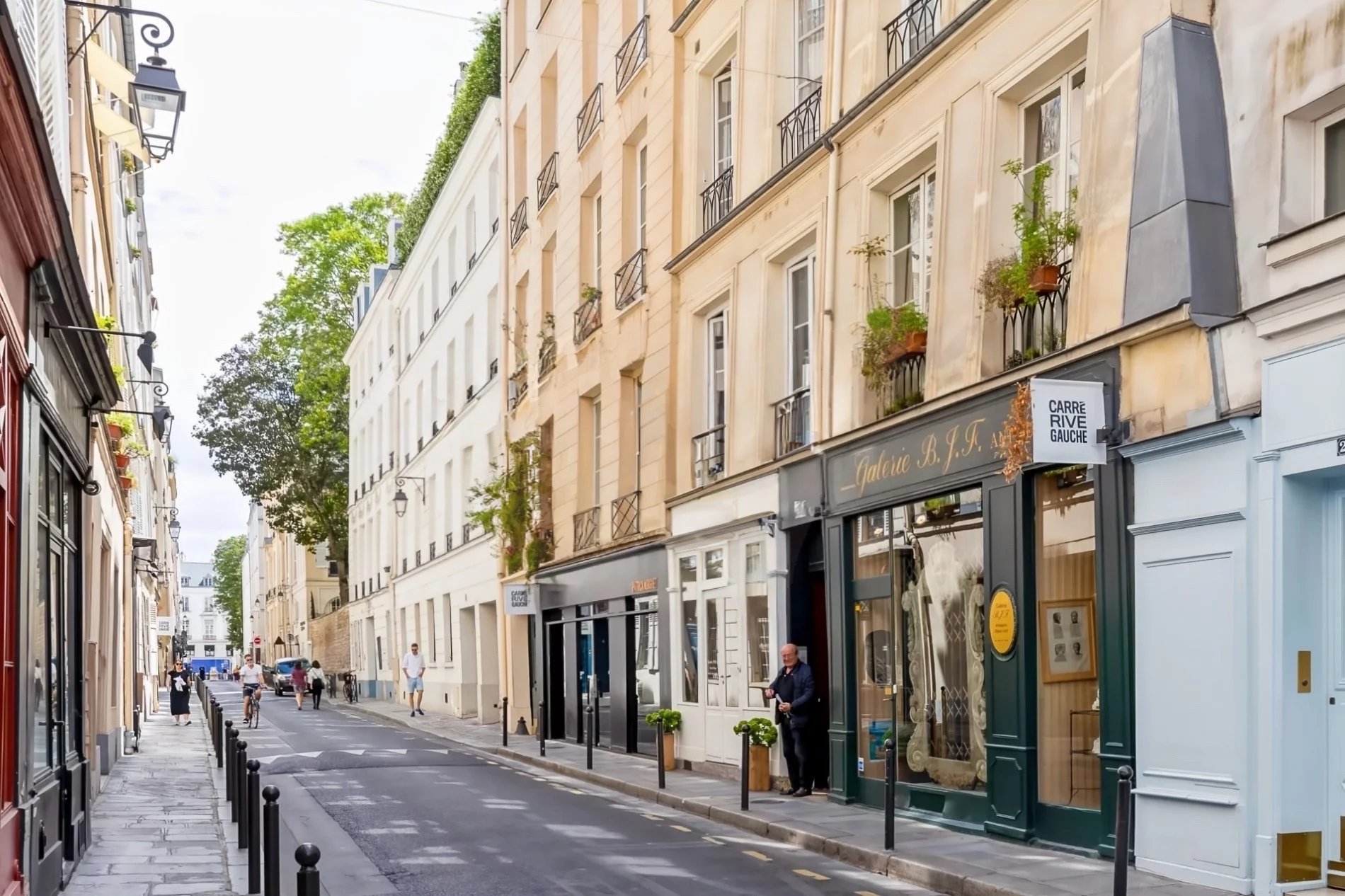 Au cœur du très recherché Carré des Antiquaires, rue de Verneuil, ce bel appartement de 125 m² Loi Carrez occupe le premier étage d’un immeuble du XIXᵉ siècle. Il séduit par son atmosphère raffinée et son agencement traversant entre rue et cour arborée.