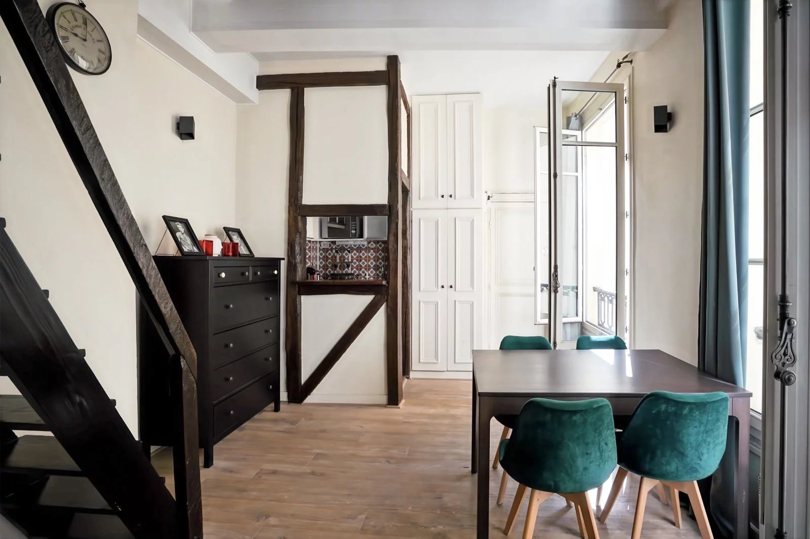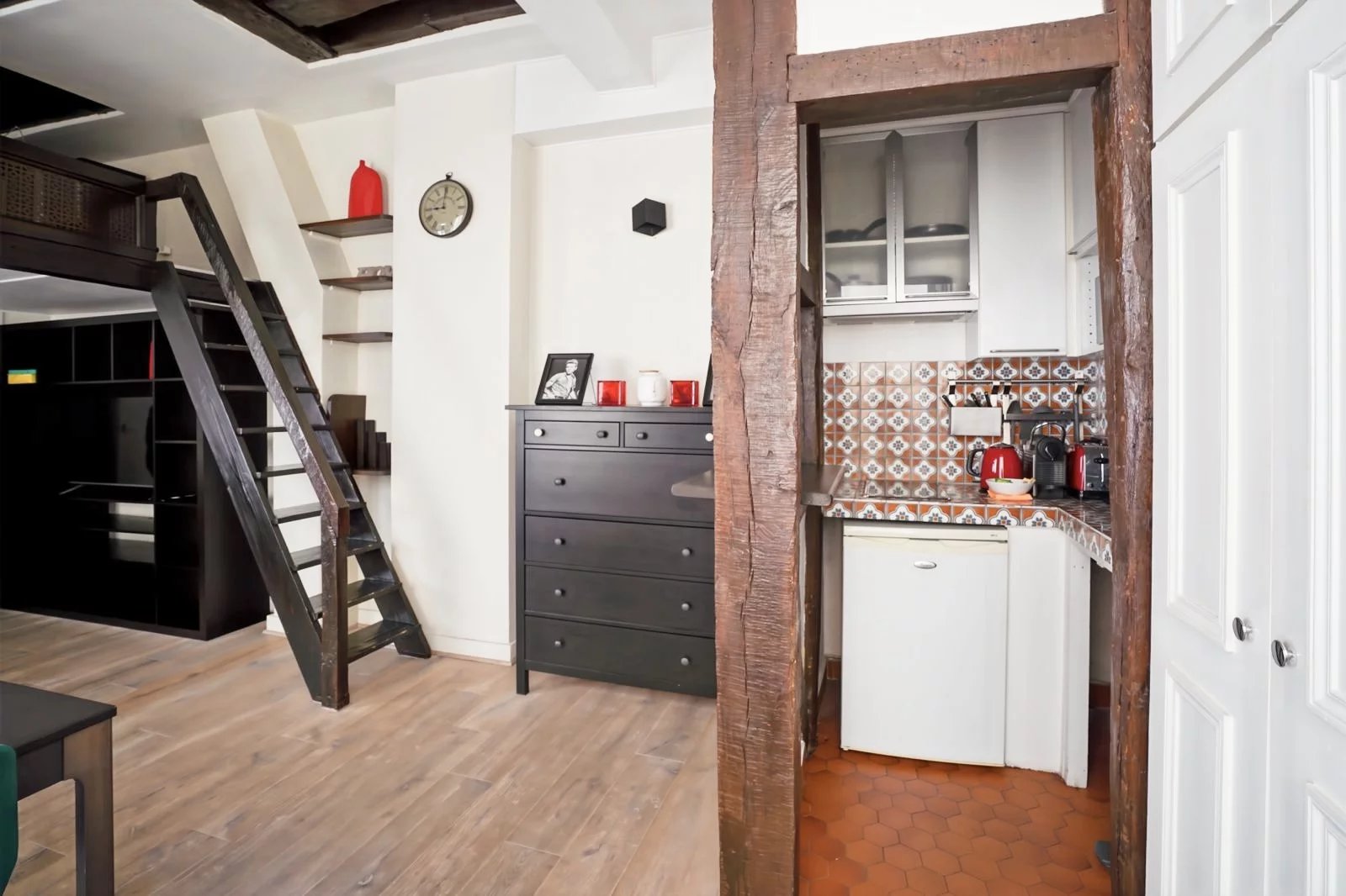 Rare à la vente, à proximité immédiate de l'Église Saint-Sulpice, au troisième étage d'un très bel immeuble dont les parties communes ont été refaites à neuf : superbe studio aux poutres apparentes de 26m² carrez (33m² au sol) orienté sud-ouest, au calme sur cour. Lumineux, le bien se compose comme suit : un grand salon avec cuisine aménagée ouverte, un coin nuit de 6,9m²en mezzanine, une salle de douche avec toilettes attenantes. Faibles charges de 70 euros par mois.